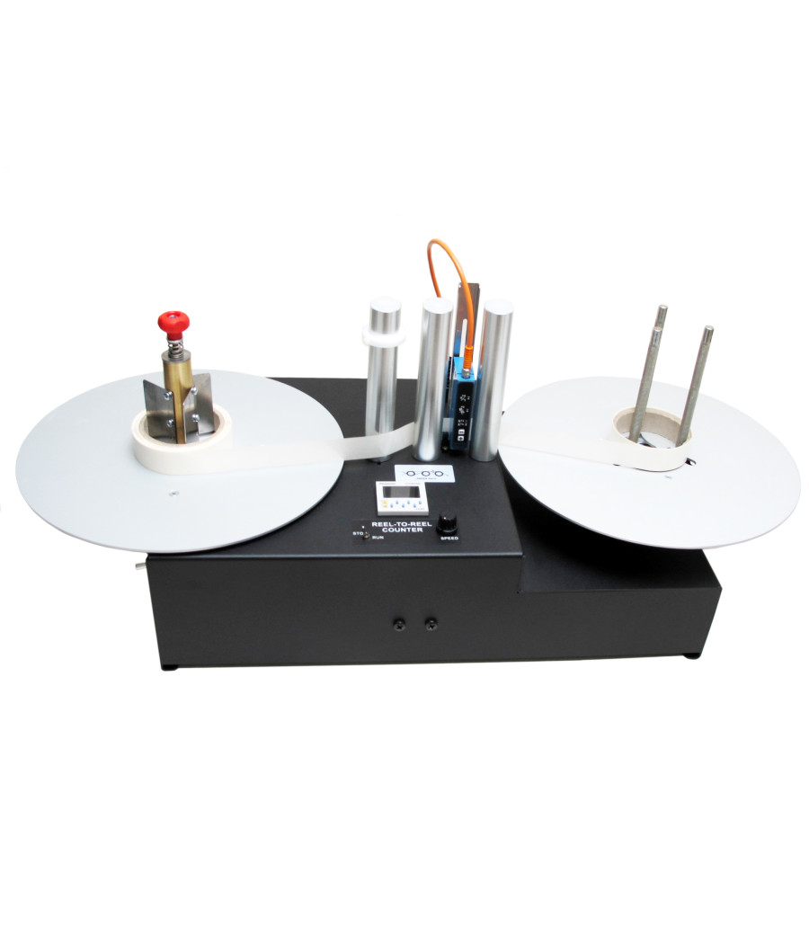 Le système de comptage bobine à bobine est un système desktop autonome utilisant un compteur de préréglage. Le RRC-330-U-ACH accueille des rouleaux présentant des dimensions maximum de 330 mm. L’arbre de déroulement et l’arbre d’entraînement sont équipés d’un « mandrin rapide » qui permet de changer rapidement le diamètre du porte-mandrin (38, 40, 44, 50, 70, 76 et 100 mm disponibles). L’arbre d’entraînement accepte les mandrins de 25 à 101 mm.