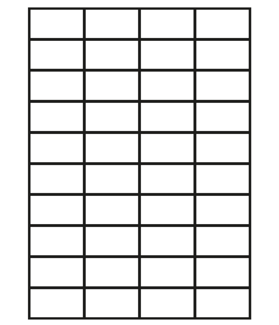 Chaque planche comprend 40 étiquettes, pour un total de 8 000 étiquettes par boîte grâce à un conditionnement de 200 planches. Ce format est idéal pour les entreprises recherchant une solution d’étiquetage en grande quantité, optimisant à la fois les coûts et la continuité des opérations.