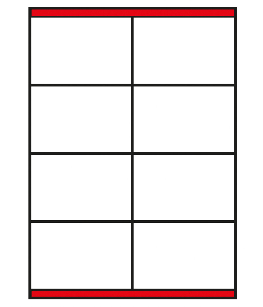 Chaque planche contient 8 étiquettes aux coins vifs pour un découpage précis et facile. La boîte comprend 100 planches, soit un total de 800 étiquettes, idéal pour les entreprises qui souhaitent gérer efficacement leur stock et réduire les interruptions dans leurs opérations.
